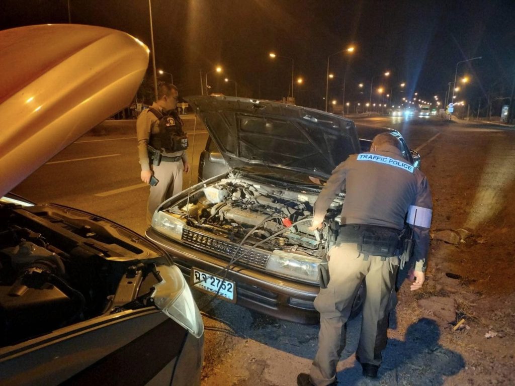 ขณะเจ้าหน้าที่ตำรวจออกตรวจในเขตพื้นที่ พบรถเก๋งจอดอยู่ข้างทาง บนถนนหมายเลข304 ข้างๆ รพ.วังน้ำเขียว นข. 20, นข.60,พลขับ20 จึงได้เข้าไปสอบถาม พบเจ้าของรถ นายประยูรฯ จึงได้ทราบว่ารถเก๋งแบตเตอรี่หมด จึงให้การช่วยเหลือ สามารถเดินทางไปต่อได้