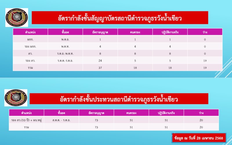 รองผู้กำกับการสอบสวน หัวหน้างานสอบสวน สถานีตำรวจภูธรวังน้ำเขียว โทรศัพท์ : 092 649 4354